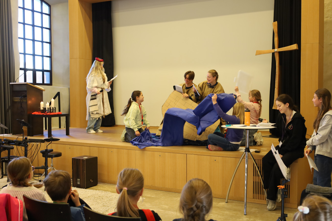 Jeder Tag stand unter einem eigenen Thema und hatte seinen eigenen Rhythmus: Einsingen der Lieder, Anfangsplenum mit Anspiel und Gebet, Gruppenarbeit mit Basteln und Spielen, Schlussplenum mit Lied und Segen. Die Kinder wurden in altersgemischten Gruppen von der ersten bis zur fünften Klasse begleitet – von einem engagierten Team aus ehrenamtlichen Teamerinnen und Teamern unter der Leitung von Pfarrerin Stefanie Probst-Wechsler.